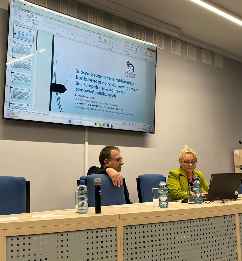 – dr Beata Wieczerzyńska, jako autor referatu ,,Subsydia zagraniczne zakłócające konkurencję na rynku wewnętrznym UE w kontekście zamówień publicznych”