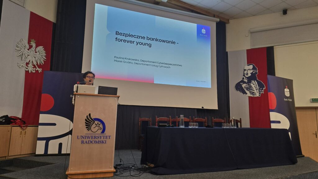 24 marca 2026 r. na Uniwersytecie Radomskim odbyło się spotkanie z ekspertami PKO Banku Polskiego, poświęcone zagadnieniom cyberbezpieczeństwa. W wydarzeniu uczestniczyli m.in. studenci kierunków: Administracja, Bezpieczeństwo wewnętrzne oraz Prawo.